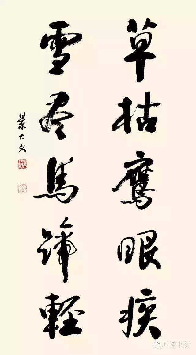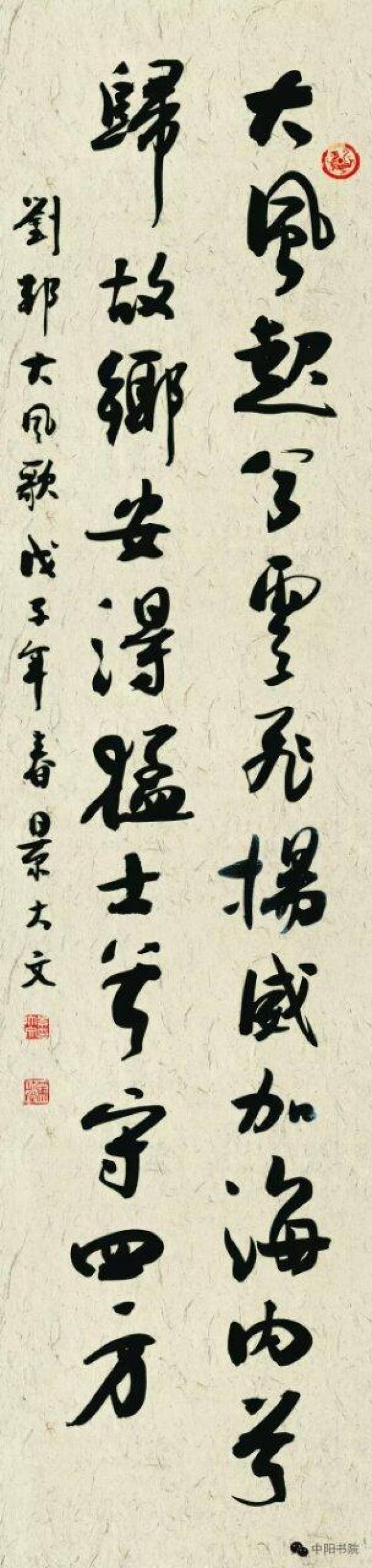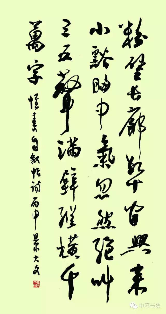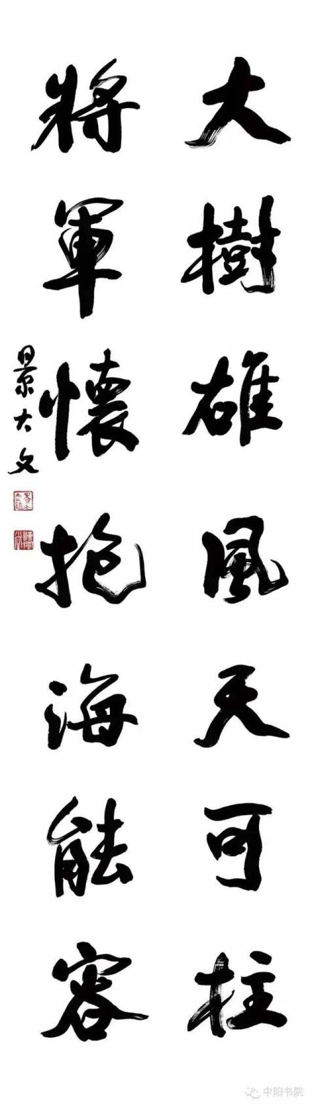 景大文先生的豪放书法大作,苍动传神且超尘脱俗,技法娴熟,圆笔中锋,放似张弓发箭,收如虎斗龙骧,创作严谨认真,且功力深厚,高度体现了书法家的实在艺术内涵,更在反映出执笔者渊博文学造诣和美好的精神面貌。 ——新加坡共和国新神州艺术院