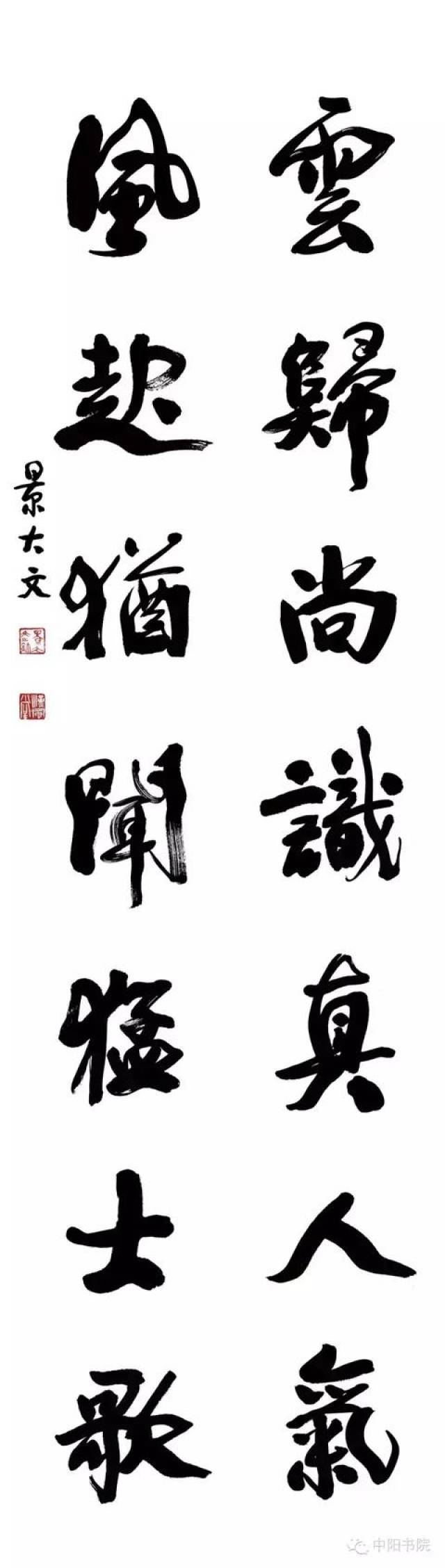 景大文先生是一位有扎实功力的书法家,数十年来,在中国传统的研习和创作上下了苦功夫,取得了瞩目的成果。他对书法理论理解透辟,实践的起点较高。从汉魏入手,出入唐宋,心领而神会,善于从百家作品,风格中汲取长处,融会贯通,形成了自己的面貌。他注重多方面的修养,从他所书的内容可见古代文学及美学修养。书法创作,从谋篇、章法到结体,都充分运用着艺术辩证法,并不断领悟到个中真谛。他的书法有清新的格调,有深厚的根基,有较强的个人面貌,已成自己风格。 ——程大利(人民美术出版社总编)