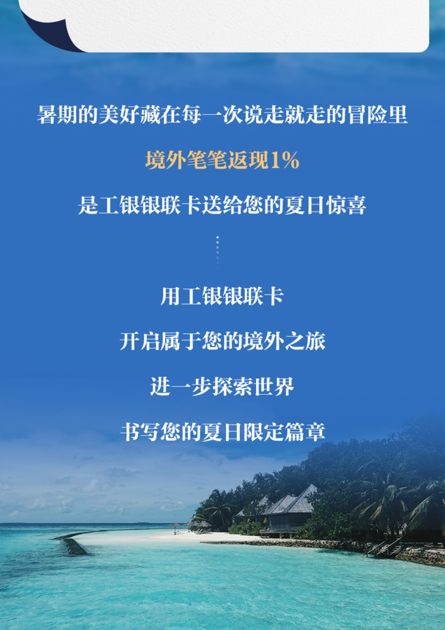 【返现】每月至高返100元,工银银联信用卡暑期特惠!助你畅游全球! -凯发k8娱乐官网app下载