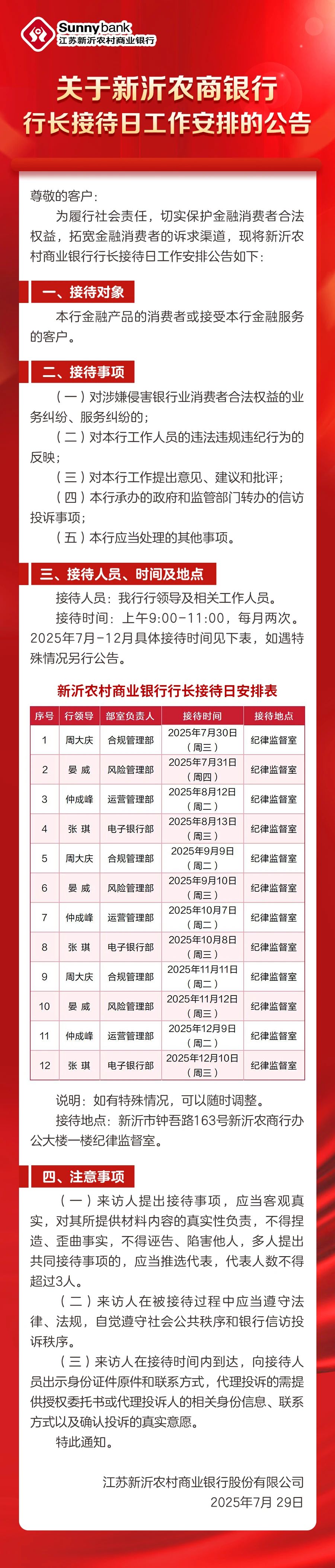 关于新沂农商银行行长接待日工作安排的公告 -凯发k8娱乐官网app下载