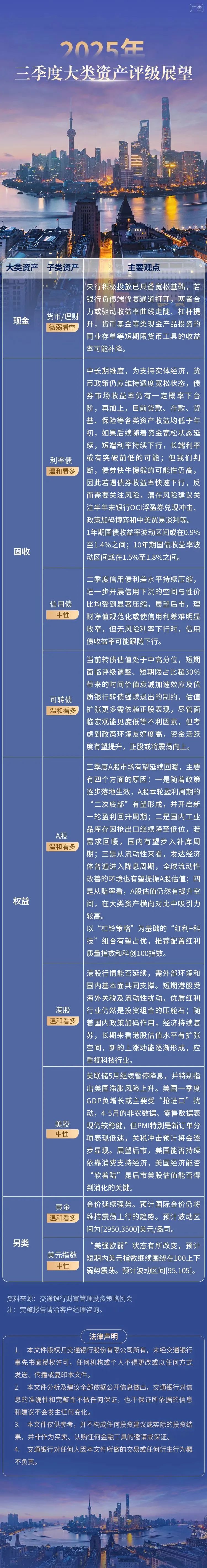 投研看市场 | 2025年三季度大类资产评级展望 -凯发k8娱乐官网app下载