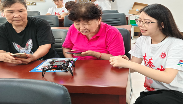 7月7日至9日,为积极响应国家智慧助老号召,徐州医科大学医学信息与工程学院“智守安康传暖意,青春护航反诈行”实践团,先后前往徐州淮海战役纪念馆、民健社区党群服务中心、民安社区及吉山老年护理院,开展了一系列以智慧助老为主题的实践活动,通过红色教育铸魂、科技助老赋能、健康服务暖心、文化传承聚力,让银龄群体在数字时代感受青春温情。 红色铸魂:从淮海精神中汲取服务力量 实践团首站走进徐州淮海战役纪念馆。展厅内,泛黄的支前账本、锈迹斑斑的独轮车、复原的战争场景,将成员们带回“小推车推出来的胜利”的峥嵘岁月。讲解员讲述着沂蒙红嫂用乳汁救伤员、百姓连夜赶制军鞋的故事时,实践团负责人余锦涛驻足在一幅支前群众合影前良久。“前辈们用血肉之躯诠释了‘人民至上’,我们今天的助老服务,就是要把这种精神延续下去。”余锦涛在实践日志中写道。 这场沉浸式红色教育,让成员们对服务意义有了更深理解。“以前觉得助老是完成任务,现在明白,这是青年对‘为人民服务’的具体践行。”实践团成员陈春宇说。带着这份感悟,团队开启了后续的助老服务。 ![]() 图为实践团成员在淮海战役纪念馆参观学习。余锦涛供图 科技助老:架起跨越数字鸿沟的“便民桥” “姑娘,这微信视频咋总发不出去?”在民健社区党群服务中心,72岁的刘爷爷举着手机,向实践团成员董秀娟问道。针对老年人“用机难”痛点,实践团在此开设“指尖课堂”,陈春宇的智能手机培训讲座成了“爆款课程”。 “社保认证就三步:点这里、输这个、确认好。”陈春宇手持手机现场演示,将复杂流程拆解成“三步口诀”。刘爷爷怕记不住,用铅笔在笔记本上画下操作步骤,陈春宇笑着补充:“爷爷,您画的这个‘箭头’比我们ppt还清楚!” 为让服务更精准,团队创新“集中授课 一对一辅导”模式。在民安社区,张艳红遇到一位因不会定闹钟而发愁的老人。她握着老人的手,从“设置”图标找到“时钟”,再到选择时间、确认保存,一步步引导。“以前总怕按错键,现在敢自己试了!”老人独立完成操作后,眼角的皱纹里都藏着笑意。 反诈科普同样关键。成员们通过案例剖析、情景模拟揭露“养老诈骗”套路:“说‘保健品包治百病’的,多半是陷阱”“陌生链接不能点,验证码千万别给”。68岁的赵大爷听完后拍着大腿:“孩子们讲得透,以后再也不怕上当了!”。据统计,仅民健、民安两社区,团队就服务老人200余人次。 ![]() 图为实践团成员指导老人使用智能手机。戴菁岑供图 健康护航:让专业服务抵达“心坎里” “陈奶奶,您试试按这个百会穴,头晕时揉一揉能缓解。”在吉山老年护理院,实践团成员一边为老人推拿肩颈,一边传授保健技巧。这里的80余位老人,成了“健康护航”行动的直接受益者。 针对高血压、糖尿病等老年常见病,团队开展专题讲座。“吃得太咸、动得太少,血压就容易‘调皮’”“每天走走路,血糖稳得住”……成员们用通俗比喻讲解医学知识,老人们听得认真,不时举手提问:“我晚上总失眠,和血压有关吗?”“糖尿病能吃水果吗?” 更贴心的是“手把手”服务。学过推拿的成员为老人按摩肩颈,缓解久坐酸痛。67岁的陈奶奶常年受肩痛困扰,体验后连连称赞:“孩子们手法专业,按完浑身轻快,比贴膏药还管用!”团队还教大家“足三里揉按增强免疫力”等简单技巧,让健康管理融入日常。 “他们不仅带来服务,更带来‘早预防、早管理’的理念,这才最珍贵。”吉山老年护理院院长说。 科技探趣:四足机器人走进银龄生活 当科技与养老相遇,会碰撞出怎样的火花?实践团在服务中引入的四足仿生机器人,为老人们打开了一扇窥探未来智慧养老的窗口。 实践团成员李伟丽带着这个“特殊伙伴”,先后走进民健社区党群服务中心、吉山养老院和民安社区。“大家看,它有四条灵活的‘腿’,能像小狗一样平稳走路,还能听懂我们说话呢!”李伟丽举起机器人,边演示边讲解其构造:“内部的传感器就像‘眼睛’和‘耳朵’,能感知周围环境,接收语音指令。”她操控着机器人完成前进、转弯、挥手等动作,老人们的眼神里闪烁着好奇的光,不少人前倾身体凑近观察,78岁的周爷爷喃喃道:“这小东西真能自己动?” 互动体验环节更掀起了小高潮。65岁的张奶奶有些犹豫地对着机器人旁边的手机说:“你好呀。”话音刚落,四足机器人立刻抬起前端的机械臂,左右摆动着“挥手”回应,动作灵活得像个打招呼的小朋友。“哎哟,真听懂了!”张奶奶惊喜地拍起手,周围的老人们也跟着笑起来,掌声和赞叹声此起彼伏。82岁的刘爷爷不甘示弱,试着说:“转个圈。”机器人果然原地打了个转,逗得他直念叨:“现在的科技真厉害,能帮着照顾人就更好了!” 李伟丽告诉老人们,这种机器人未来可能用于协助护理、陪伴聊天,甚至监测老人身体状况。“比如老人独自在家时,它能通过传感器发现异常,及时联系家人。”这番话让老人们充满期待。 ![]() 图为四足仿生机器人与老人们互动。余锦涛供图 从智能手机到ai技术,从健康服务到机器人互动,徐州医科大学实践团用青年的智慧与热情,让银龄群体触摸到科技的温度,也让“智慧养老”从概念变成了可感知的生活场景。 文化赋能:当传统戏曲遇上ai科技 “这段《霸王别姬》,我年轻时在戏园子里听过!”在民健社