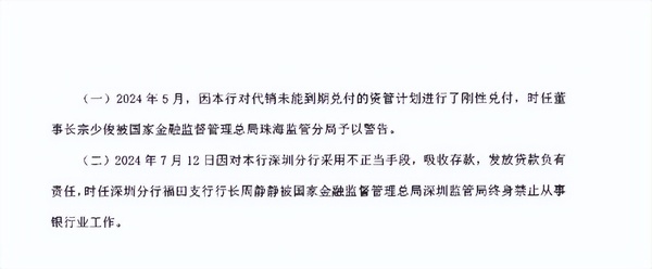 近日,珠海华润银行因“反洗钱业务管理规定”等多项违规,被警告并罚款334.75万元,4名时任高管连带受罚。 记者注意到,2024年以来,珠海华润银行及分支机构、相关责任人因违法违规受到5次行政处罚。近一年半的时间,珠海华润银行被罚超千万元,究竟发生了什么? 因违反多项管理规定受罚 近日,中国人民银行广东省分行披露了多张罚单,剑指珠海华润银行股份有限公司及其相关责任人。 具体来看,珠海华润银行的主要违法违规事实包括:违反支付结算业务、货币金银业务、国库业务、征信业务、反洗钱业务管理规定。针对上述行为,中国人民银行广东省分行对其作出警告,并处以334.75万元的罚款。 4名责任人也一同受罚,珠海华润银行时任个人信贷部总经理、个人金融部负责人吴某,被罚款13.5万元;时任珠海华润银行智能科技部副总经理马某杰,被罚款1.1万元;时任珠海华润银行风险管理部信用风险管理部总经理程某,被罚款7.6万元;时任珠海华润银行法律合规部总经理谭某,被罚款5万元。 ![]() 图片来自:中国人民银行广东省分行 珠海华润银行方面对记者表示,对此不作回应。 不过,记者从珠海华润银行2024年年报看到,该银行正在进行整改。 珠海华润银行在年报中提到,对于反洗钱工作方面,该行紧盯整改落实,持续推进监管部门检查反洗钱方面的整改,同时启动整改检视工作。2025年重点评估和优化反洗钱内控制度,全面检视问题整改有效性,全面开展机构洗钱风险自评估。 一年半内累计罚款超千万元 这并不是珠海华润银行首次收到大额罚单。此前,该银行还收到4张罚金百万元的罚单。就在一年半的时间内,珠海华润银行罚金超千万元。 2025年1月,惠州金融监管分局披露的罚单显示,珠海华润银行惠州分行及其多家支行因贷款业务严重违反审慎经营规则,合计被罚款120万元。 2024年5月,珠海华润银行因刚性兑付代销资管计划,被罚款700万元,这是该行成立以来收到的最大罚单。时任行长、原董事长宗少俊因此被警告。 2024年7月,该行深圳分行因采用不正当手段吸收存款、发放贷款,被深圳金融监管局没收违法所得35.25万元,罚款200万元。时任深圳福田支行行长周静静、行长助理程光宇、客户经理周一鸣对此负有责任,分别被终身禁止从事银行业工作、禁止从事银行业工作8年、禁止从事银行业工作5年。 ![]() 图片来源:珠海华润银行2024年年报 2024年7月,该行又因违反规定办理结汇业务、售汇业务以及经常项目资金收付审查不严等问题,被国家外汇管理局广东省分局罚款110万元、没收违法所得合计61264.71元。 业内人士表示,被监管开出百万级罚单,反映出了其在合规经营和内控方面存在一定的缺陷,须持续加强内控和提高管理水平。 近年来业绩不振 资产质量管理压力加大 珠海华润银行近年来业绩不振,这其中就有内部信贷风险把控不严、合规操作不到位所导致的资产质量问题。 背靠华润等股东,珠海华润银行营收出现快速提升。从业绩数据来看,2022年至2024年,营业收入持续增长,分别为65.23亿元、68亿元、71.32亿元。 不过,珠海华润银行净利润却持续下滑,2022年至2024年分别为20.03亿元、14.02亿元、4.49亿元。 ![]() 图片来源:上海新世纪评级报告 受到息差持续收窄、拨备计提规模增长等综合因素影响,珠海华润银行利润水平同比下滑。年报显示,2024年该行实现净利润同比减少67.97%。 中证鹏元在该银行债券评级报告中称,预计银行仍存在一定拨备计提压力,需关注资产质量信用状况变化对盈利的影响。 具体来看,2024年珠海华润银行计提信用减值损失42.92亿元,同比增长44.64%,拨备计提规模的增长侵蚀了利润空间。其中,计提贷款减值损失27.20亿元,同比基本持平;计提债权投资减值损失13.43亿元,同比增加11.18亿元。 从信贷资产质量来看,截至2024年末,珠海华润银行监管口径下逾期贷款和关注类贷款的规模分别为69.84亿元和66.24亿元,逾期贷款占比和关注类贷款占比同比分别上升0.13和0.47个百分点至2.91%和2.76%,逾期90天以上贷款与不良贷款的比例为98.19%。 可见银行资产质量管理压力加大,需关注其资产质量迁徙对盈利的影响。 截至2024年末,该行不良贷款余额为39.52亿元,不良贷款率为1.65%;不良贷款主要集中在批发零售业和房地产业。在当前房地产市场景气度较低且相关企业资金链整体趋紧的背景下,面临一定信用风险管控压力。 行长职位已空缺7个月 息差逐年收窄、拨备压力较大、净利润规模及盈利水平下滑等风险因素,让银行管理层面临更大的挑战。 2023年5月,华润银行公开“海选”总行行长,钱曦获聘行长。2025年1月初,珠海华润银行召开股东大会,钱曦升任第八届董事会董事长。6月20日,广东金融监管局公布的文件显示,经审核,核准钱曦珠海华润银行董事长的任职资格。 公开资料显示,钱曦1970年出生,是西南财经大学金融学博士。加入华润银行前,他在招商银行任职多年,曾担任招商银行大连分行行长、总行战略客户部总经理、佛山分行行长、西安分行行长等职务。 ![]() 截至8月15日,华润银行凯发k8娱乐官网app下载官网仍未更新管理团队信息 图片来源:华润银行凯发k8娱乐官网app下载官网 而钱曦升任董事长后,该银行行长空缺至今。 今年年初,珠海华润银行发出总行行长招聘公告。从此次招聘要求来看,应聘者需从事银行业工作10年以上,年龄不超过50岁,且要求应聘者