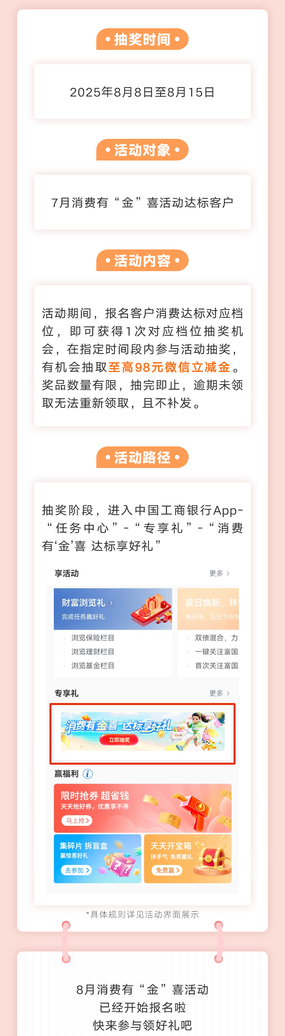 消费有“金”喜(7月)达标客户,快抽至高98元微信立减金 -凯发k8娱乐官网app下载