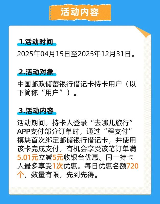 【首绑有礼】畅游无忧,去哪儿首绑立减5元! -凯发k8娱乐官网app下载2025-08-07 21:39来源:中国邮政储蓄银行