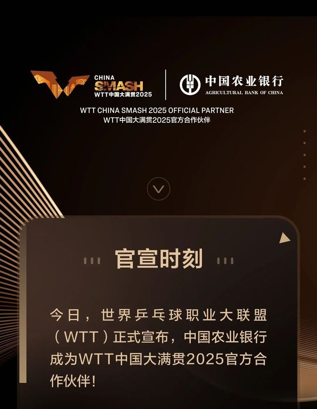 官宣有料|中国农业银行成为wtt中国大满贯2025官方凯发k8娱乐官网app下载的合作伙伴 -凯发k8娱乐官网app下载
