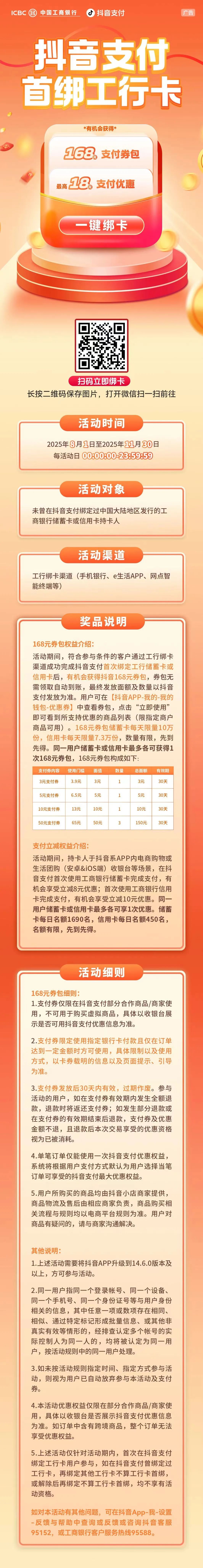 【抖音首绑礼】抖音支付首绑工行卡有机会得168元支付券包! -凯发k8娱乐官网app下载