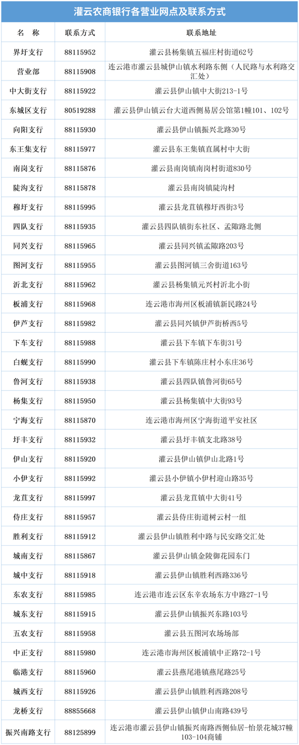 来源:江苏灌云农村商业银行
