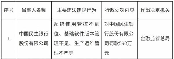 因系统使用管控不到位 中国民生银行被罚590万元 -凯发k8娱乐官网app下载2025-09-15 09:33来源:信网