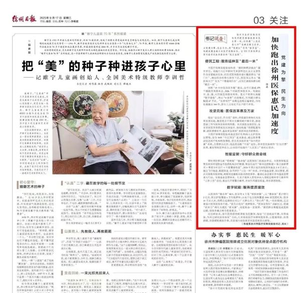 9月17日,《徐州日报》“书记说责”栏目刊发市医保局党组书记、局长杨晶署名文章:“党建为擎 民生 ![]() 全文如下 徐州市医疗保障局党组坚持把党旗插在服务民生第一线,以创建“人民在我心中”党建品牌为抓手,以党建为擎、民生为向,用“党建红”引领“医保蓝”,构建起覆盖城乡的医疗保障体系,让930万参保群众真切感受到医保服务的“民生温度”。 便民工程:服务延伸至“最后一米” 市医疗保障局党组始终将“旗帜鲜明讲政治”摆在首位,将践行习近平新时代中国特色社会主义思想作为首要政治任务,把优质医保服务窗口搬到群众“家门口”,推动经办标准化服务下沉,使医保业务从“跑医保大厅”变为“下楼遛弯即办”,切实打通服务群众的“最后一米”。 依托“15分钟医保服务圈”建设,全市已建成275个镇级医保服务点、2826个村级医保服务点,构建起市、县、镇、村四级医保服务网络。党员干部牵头破解“数字壁垒”,推出“0表单”办理模式,年均减少群众跑腿47万次。“生育网厅”实现全流程云端审批,日均处理量达300件,新生儿父母足不出户即可申领。 攻坚克难:医保改革惠及万家 锚定“走在前、作示范”目标,将党建优势转化为改革发展动能,激励党员干部在关键领域冲锋在前,推动党建工作与医保改革同频共振。我市获批全国首批、全省首家医保资源规划试点城市,推动构建“资源配置均衡、就医便捷有序、基金安全高效”的医保定点新格局。 市医疗保障局党组将基层医疗机构纳入长护险协议管理,定为2025“书记项目”重点推进,通过改革带动促进医疗机构转型增收。党员攻关组研发“徐州药价通”系统,方便群众比价,促进药店按“市场”定价。将中医优势病种“打包付费”改革,激发传统医学活力,以实际行动践行“人民至上”的初心使命。 智能监管:守好群众救命钱 管好用好群众的“看病钱”“救命钱”是医保部门的政治责任。市医保智能监管系统实时追踪全市医药机构诊疗数据,常态化运行“每日监控数据 每月抽审费用 季度分析运行 年度覆盖检查”,2024年累计追回违规医保基金3.1亿余元。建立飞行检查、数据筛查、信用评价“三位一体”体系。针对基金监管、协议管理、药品采购等风险领域,梳理制定廉政风险点防控清单。邀请社会监督员参与基金监管重大行动,完善基金监管体系。扎实开展深入贯彻中央八项规定精神学习教育和“三争三为”活动,常态化开展警示教育,夯实作风建设根基,筑牢思想防线。 数字赋能:服务提质增效 从医保码“激活率”86%,到日均4万笔“刷脸结算”,从“惠徐保”累计赔付2亿元,到长护险覆盖6万失能群体;从电子处方流转覆盖3016家医药机构、服务10万余人次,到药品追溯码应用让广大群众用上“放心药”等,一组组数据,见证着徐州医保的服务升级。“党员示范岗”亮牌服务,“医保宣传队”活跃社区,党建“软实力”转化为惠民“硬支撑”,局党组会一直强调:“要把群众难题变成党组议题,将服务痛点转为党建重点。” 站在新起点,徐州医保将持续厚植为民情怀,锚定“打造政治可靠、本领高强、作风过硬的医保铁军”目标,扎实推进医疗保障制度改革,以党建领航、改革破题、信息赋能的组合拳,在彭城大地绘就更有温度的民生画卷。 (作者系徐州市医疗保障局党组书记、局长)
