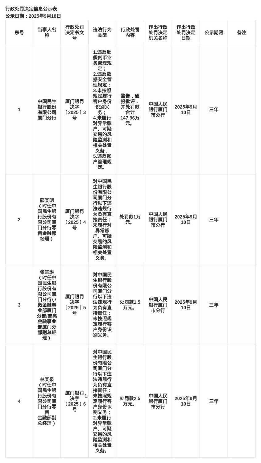 民生银行厦门分行被罚147.96万,涉多项违规行为 -凯发k8娱乐官网app下载2025-09-18 22:22来源:蓝鲸新闻