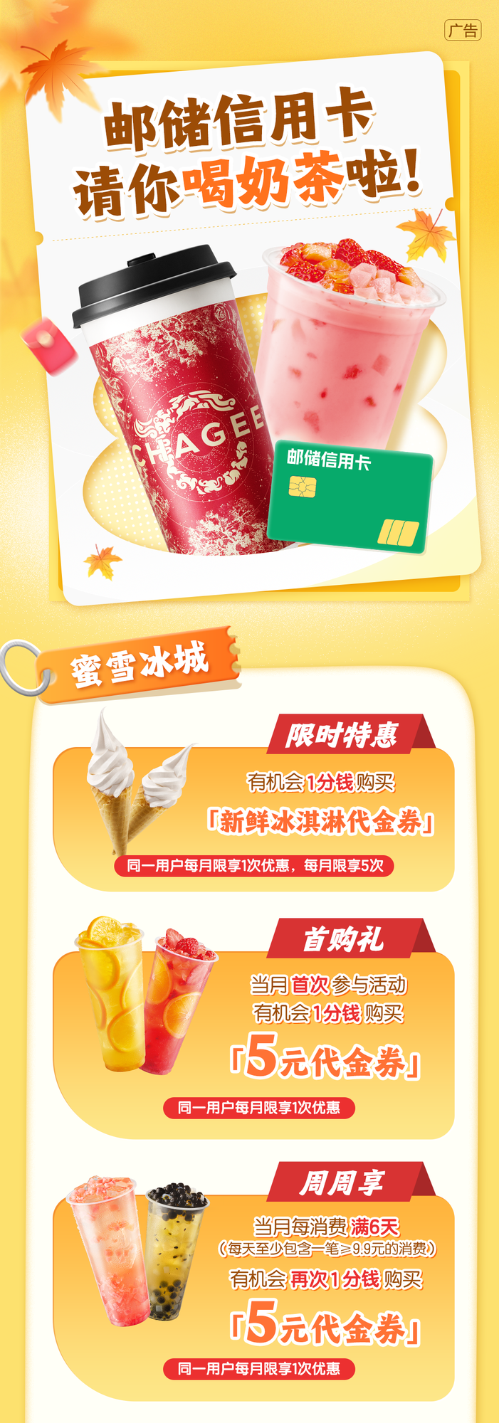 【刷卡有喜】邮储信用卡请你喝奶茶啦! -凯发k8娱乐官网app下载