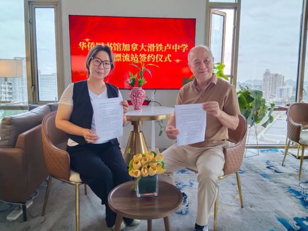 9月18日,华侨图书馆发起人镇翔和加拿大滑铁卢中学代表赵晨言老师签署协议,合作建设华侨图书馆加拿大滑铁卢中学图书漂流站。 ![]() 滑铁卢中学位于加拿大安大略省滑铁卢市,是当地一所知名的民办中学,学生以当地居民子女为主,也有部分华人移民子女。该校开设中文课程,图书漂流站的建立,将大大提高学生们学习中文的兴趣和效率。 签字仪式在华侨图书馆南京国际交流教育图书漂流站举行。这将是华侨图书馆在海外建立的150个图书漂流站。