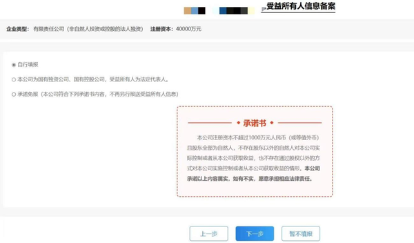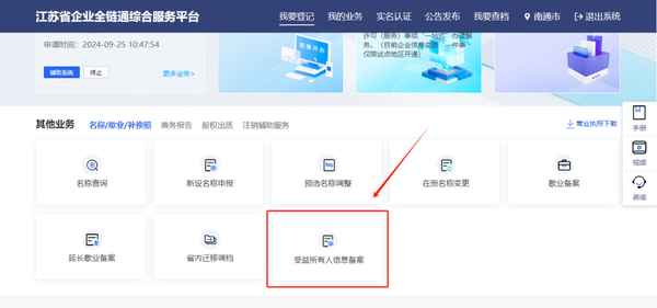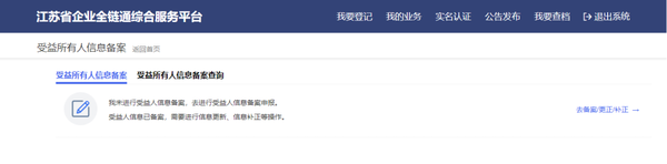 尊敬的客户: 为提高市场透明度,维护市场秩序、金融秩序,预防和遏制洗钱、恐怖主义融资活动,根据中国人民银行、国家市场监督管理总局发布的《受益所有人信息管理办法》要求,自2024年11月1日起,新申请设立的备案主体,应当通过“江苏省企业全链通综合服务平台”备案受益所有人信息;2024年11月1日以前登记的备案主体,应当在2025年11月1日前完成受益所有人信息备案工作。为保证我行客户及时准确备案受益所有人信息,特做以下备案提示: 问题1:受益所有人指什么? 受益所有人是指最终拥有或者实际控制备案主体,或者享有备案主体最终收益的自然人。 具体来讲,符合以下条件之一的自然人为备案主体的受益所有人: (一)通过直接方式或间接方式最终拥有备案主体25%以上股权、股份或合伙权益。 (二)虽未满足第一项标准,但最终享有备案主体25%以上收益权、表决权。 (三)虽未满足第一项标准,但单独或者联合对备案主体进行实际控制。 不存在以上三种情形的,应当将备案主体中负责日常经营管理的人员视为受益所有人进行备案。 国有独资公司、国有控股公司应当将法定代表人视为受益所有人进行备案。 外国公司分支机构的受益所有人为外国公司按照规定认定的受益所有人,以及该分支机构的高级管理人员。 问题2:哪些主体不需要备案? 个体工商户、非公司企业法人(全民所有制企业、集体所有制企业、联营企业)、个人独资企业、农民专业合作社(联合社)及其分支机构,以及境内公司、合伙企业的分支机构暂时无需备案受益所有人。 问题3:哪些主体需要备案: (一)公司 (二)合伙企业 (三)外国公司分支机构 (四)中国人民银行、国家市场监督管理总局规定的其他主体 问题4:哪些主体在承诺后免报受益所有人信息? 为减轻中小微企业的填报负担,同时满足以下条件的备案主体在填报系统的“承诺免报”选项中勾选确认后可免报受益所有人信息: (一)注册资本(出资额)不超过1000万元人民币(或等值外币)。 (二)股东、合伙人全部为自然人。 (三)不存在股东、合伙人以外的自然人对其实际控制或从其获取利益。 (四)不存在通过股权、合伙权益以外的方式对其实施控制或者从其获取利益。 问题5:受益所有人信息是否对外公开?是否可以查询? 受益所有人信息不对社会公开,无公开渠道查询受益所有人信息。 我行为您整理了这份简易填报指南,助您5分钟快速完成备案。 1.登录平台 使用浏览器打开江苏省企业全链通综合服务平台(https://scjg.jszwfw.gov.cn/alllinks/business/index/home.jsp),您可通过短信验证码、支付宝扫码等方式快捷登录。 ![]() 2.登录后,依次点击“我要登记”->“受益所有人信息备案” ![]() 3.输入企业信息 在备案页面,点击右侧“去备案/更正/补正→”按钮,在弹出的信息框中输入“统一社会信用代码”和“企业名称”,点击下一步,系统会自动校验您的备案状态。 ![]() ![]() 4.选择备案类型,填写备案信息 系统会根据企业类型出现提示选项,您根据实际情况选择其中一项即可。 ①自行填报,适用于一般公司,需填写受益所有人的姓名、性别、国籍等信息,所有带红色“*”的字段均需填写。 ![]() ![]() ![]() ②国有独资公司、国有控股企业 公司为国有独资、国有控股的,选择此项后点击下一步系统会进行校验,校验成功后系统会识别法定代表人信息并自动上报。 ![]() ③承诺免报 符合承诺免报条件的企业可依次点击“承诺免报”->“下一步”完成申报。 ![]()