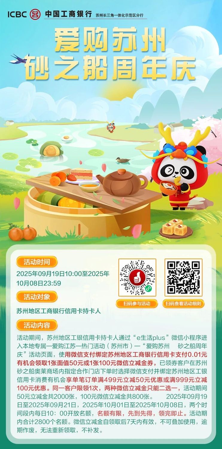 【爱购苏州】砂之船奥莱周年庆,工行优惠最高立减100元! -凯发k8娱乐官网app下载