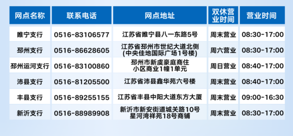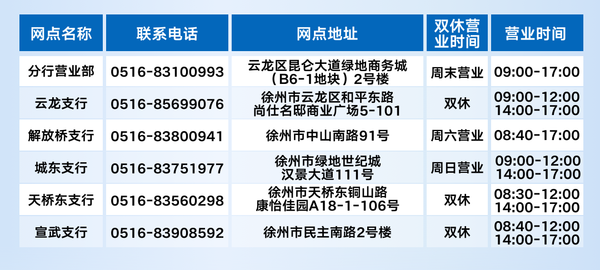 江苏银行徐州分行网点营业信息 -凯发k8娱乐官网app下载