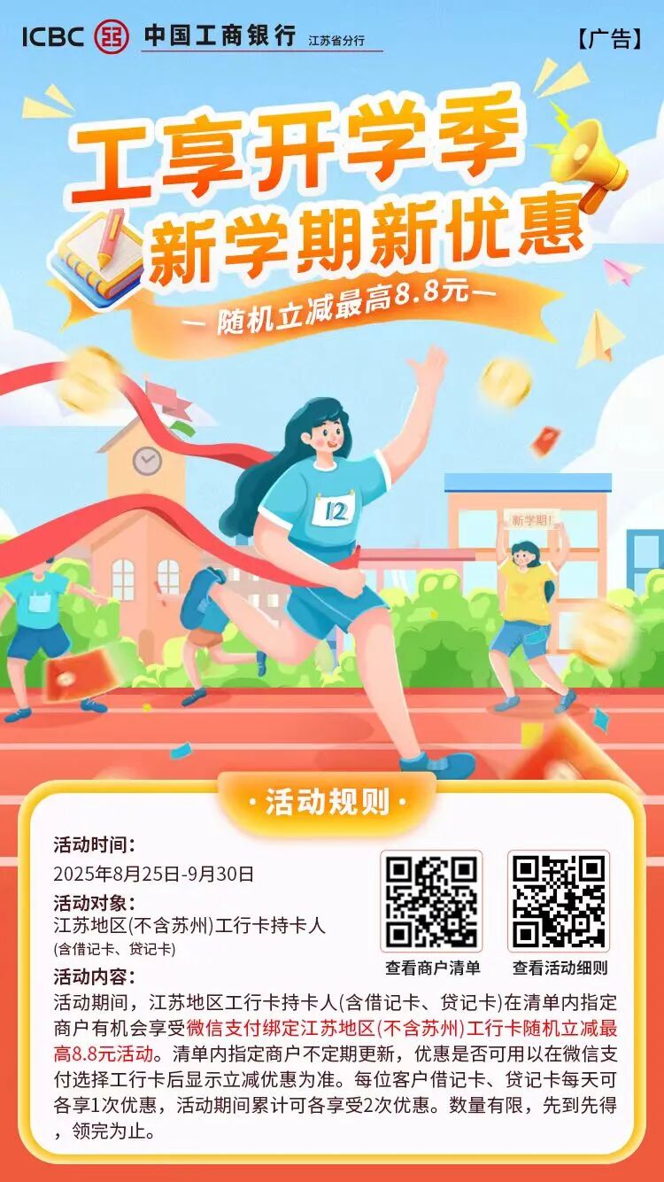 【工享开学季】美团、手机银行、饿了么、拼多多、微信多重好礼惊喜来袭! -凯发k8娱乐官网app下载2025-09-09 23:12来源:工银江苏金融云管家