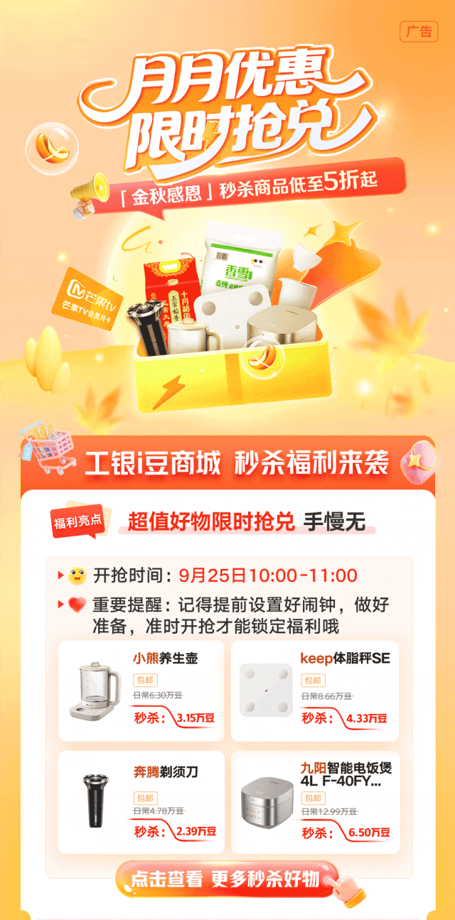 【拼手速】工银i豆商城限时秒杀,养生壶、影音会员卡等好物低至5折起…… -凯发k8娱乐官网app下载