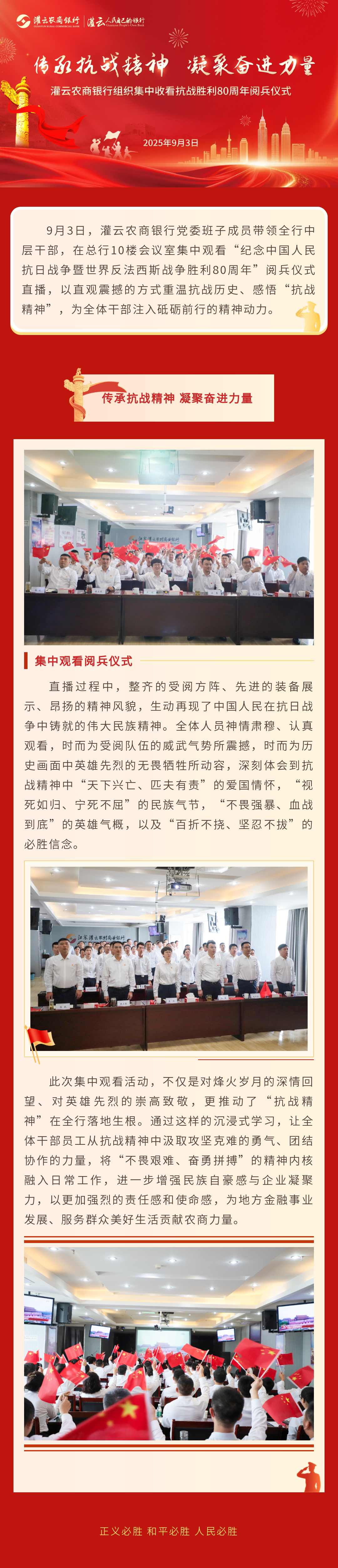 传承抗战精神 凝聚奋进力量——灌云农商银行组织集中收看抗战胜利80周年阅兵仪式 -凯发k8娱乐官网app下载