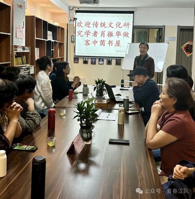 2025年9月22日,秋雨淅沥,中茵书屋内却暖意融融,一场以“感悟《易经》智慧,涵养日常生活”为主题的文化讲座在此如期举行,吸引了30多位传统文化爱好者齐聚一堂。徐州杂文学会部分会员参与了此次文化活动。 22日下午,在特邀主持人李继玲老师热情洋溢的开场白中,活动正式拉开帷幕。屏幕上映出“欢迎传统文化研究学者肖振华先生做客中茵书屋”的温馨字样,现场读者报以热烈掌声。