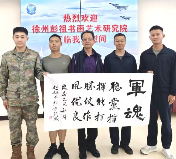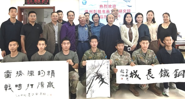在国庆、中秋双节来临之际,徐州彭祖书画艺术研究院组织知名书画家前往驻徐空军某部,开展庆国庆迎中秋“书画进军营”活动,助力丰富军营文化生活,为强军卫国的指战员们送上最诚挚的节日祝福,接续绘就新时代军民团结一家亲、爱我人民爱我军的双拥新画卷。 ![]() ![]() 活动现场,冒雨前来的书画家们以传统文化为纽带,以水墨丹青为桥梁,把爱国拥军情怀倾注于笔端,将对人民子弟兵的深情厚谊淋漓尽致地挥洒在尺素之上,2个多小时创作了“业务练的精、战时打得赢”、“钢铁长城”、“竹影清风”等十几幅书画作品,并全部无偿赠送给部队,使浸润在书画墨香中的在场官兵感受到中华文化的博大精深。 ![]() ![]() ![]() 徐州彭祖书画艺术研究院名誉院长晁岱卫与官兵们座谈交流时表示,徐州是重要的驻军大市,素有拥军优属、拥政爱民的优良传统。今年4月,荣膺全国双拥模范城“十连冠”。我们将持续深化双拥共建活动,努力让中华传统文化滋养转化为强军兴军强大动力、为双拥优良传统在新时代焕发新风采作出更大贡献。 书画创作交流活动结束后,驻徐空军某部领导邀请书画家以及参加活动的徐工集团、徐州智慧赋等企业家参观机场军事设施,体验军营餐饮文化,感受强军兴军新风貌,增进了新时代军民融合发展鱼水情。 (宋翔 胡乐祥)
