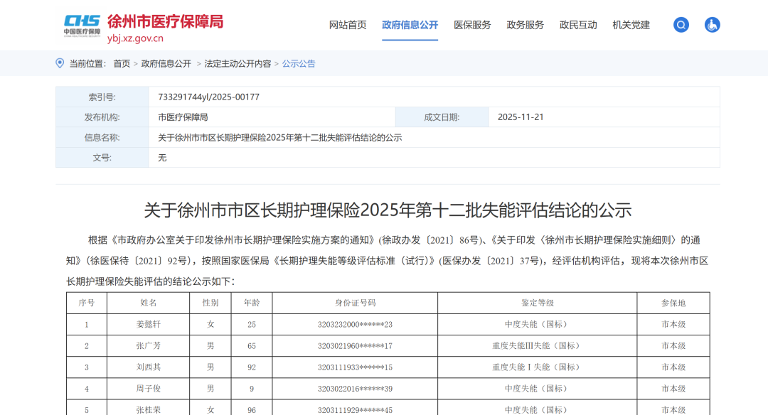关于徐州市市区长期护理保险2025年第十二批失能评估结论的公示 -凯发k8娱乐官网app下载