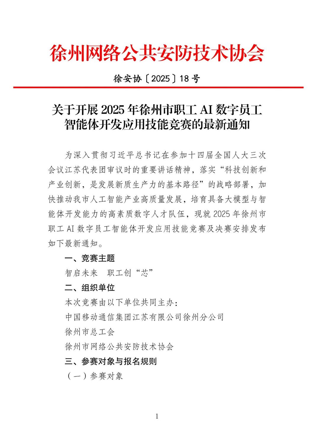 关于开展2025年徐州市职工ai数字员工智能体开发应用技能竞赛的最新通知 -凯发k8娱乐官网app下载