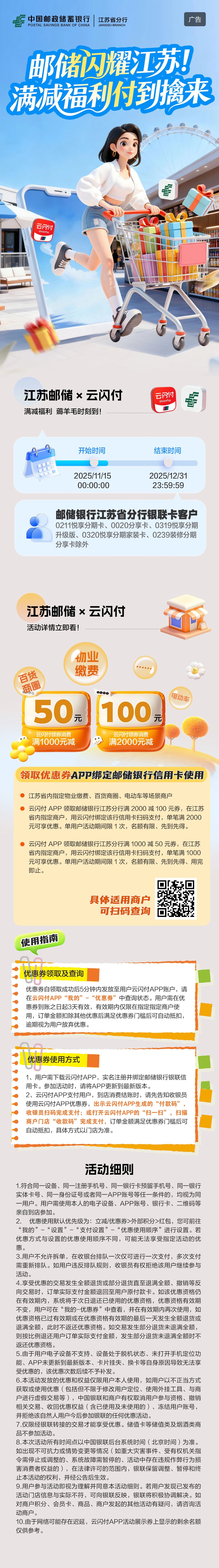 江苏邮储×云闪付,满减福利来啦! -凯发k8娱乐官网app下载