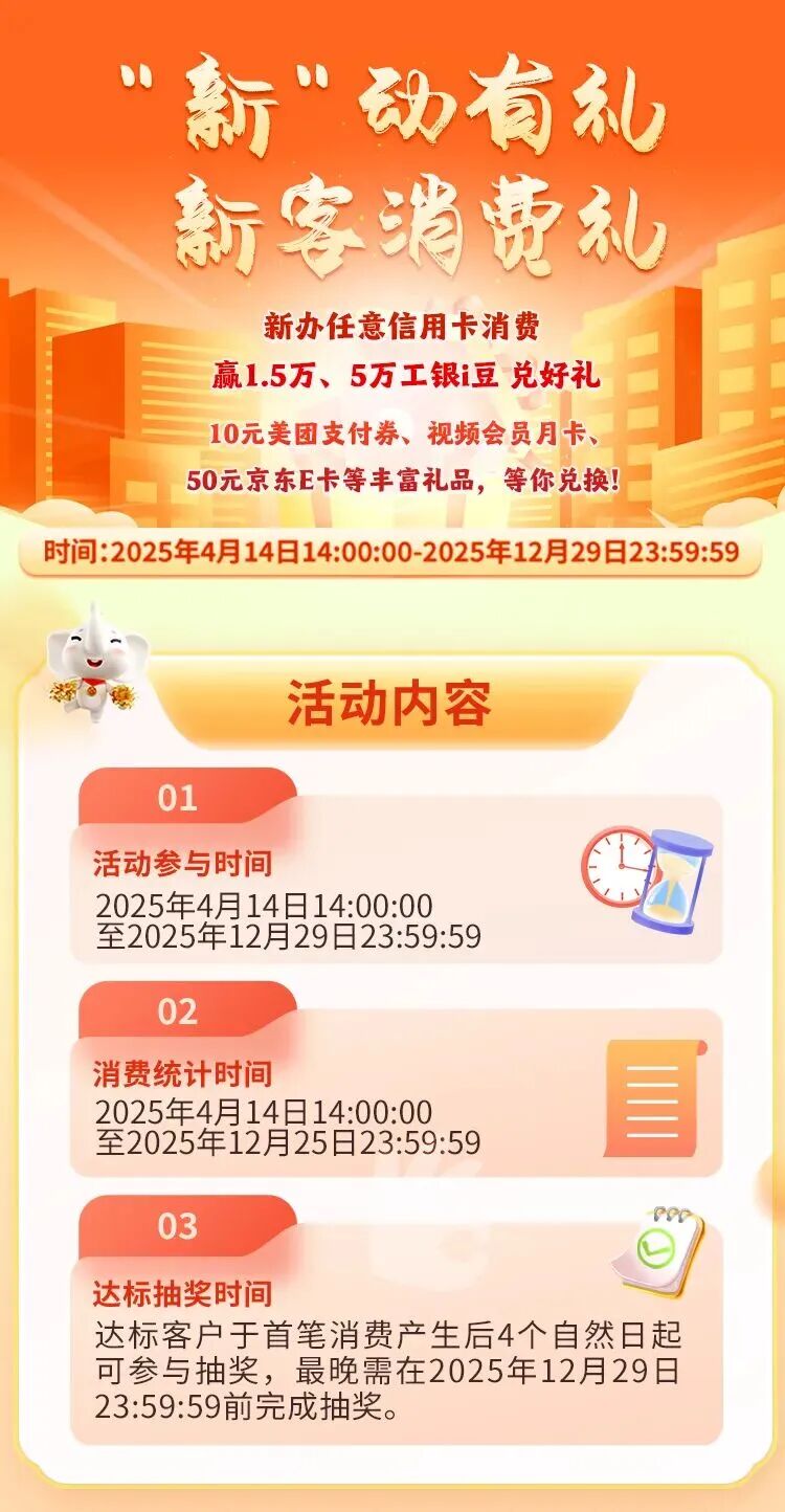 【新客消费礼】新办任意信用卡消费有机会抽取最高5万工银i豆 -凯发k8娱乐官网app下载