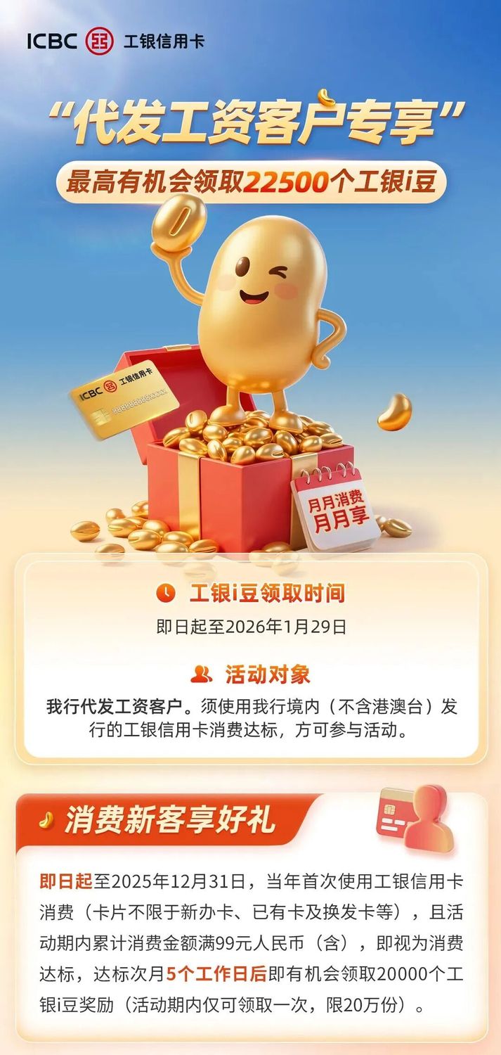 【代发工资客户专享】最高有机会领取22500个工银i豆! -凯发k8娱乐官网app下载
