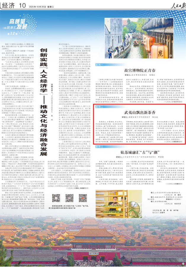 党的二十届四中全会提出,大力繁荣文化事业,加快发展文化产业,提升中华文明传播力影响力。 文化如水,润物无声,连接着一个民族的过去、现在和未来。 今日之中国,很古朴也很时尚。中华优秀传统文化引领“新国潮”,消费市场掀起“中国风”,人文与经济交融共生、相得益彰。 消费驱动、文旅融合、科技赋能,如何进一步激活中华优秀传统文化的生命力?以福建武夷山为例,在这里,广大科技特派员走出实验室,深入田间地头,“带着农民干,帮着农民赚”,不仅把科技致富的种子播撒在乡野大地上,也让传承千年的茶文化更加韵味悠长。