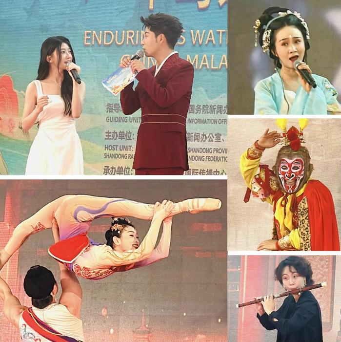 the artistic performances were spectacular and harmonious. the universiti putra malaysia chinese orchestra’s “flourishing age” enveloped the audience in the beauty of traditional chinese instruments; the malaysian zapin dance troupe’s “zapin welcomes spring” showcased the charm of local culture with graceful movements; the xi’an soldier acrobatic troupe’s shoulder ballet “dreams of chang’an” vividly displayed the essence of chinese acrobatic art with breathtaking skill; the henan opera “the monkey king”, led by the “central plains monkey king” sun jingpeng, displayed the unique charm of chinese opera with agile movements; and dr. wang ping, a music doctoral graduate from ucsi university, performed the classic folk song “jasmine flower”, its melodious tune and lingering notes evoking emotional resonance among the people of both nations. “national style goddess” shen feifei made a stunning appearance with her performance “li qingzhao”, delicately unfolding the poetic charm of li qingzhao’s hometown and the elegance of jinan, the “city of springs”. during the event, malaysian internet influencer qian qian long, with over 16 million followers, interacted on stage as the “china-malaysia spring festival ambassador,” sharing her experiences of chinese culture and building bridges for youth exchanges between the two countries.