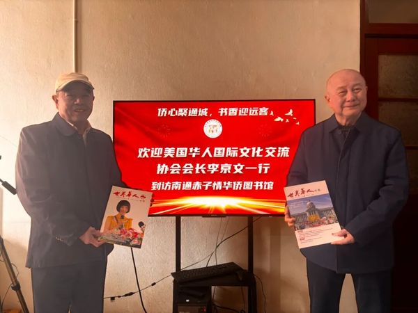 受现场交流氛围感染,李京文会长代表美国华人国际文化交流协会、江西上高旅美侨眷联谊会,与华侨图书馆发起人镇翔现场签署协议,确定在美国华人国际文化交流协会、江西上高旅美侨眷联谊会两地共建南通赤子情华侨图书馆图书漂流站。未来,双方将依托漂流站推动侨界图书互通共享,让书香成为侨胞联结家乡的纽带。