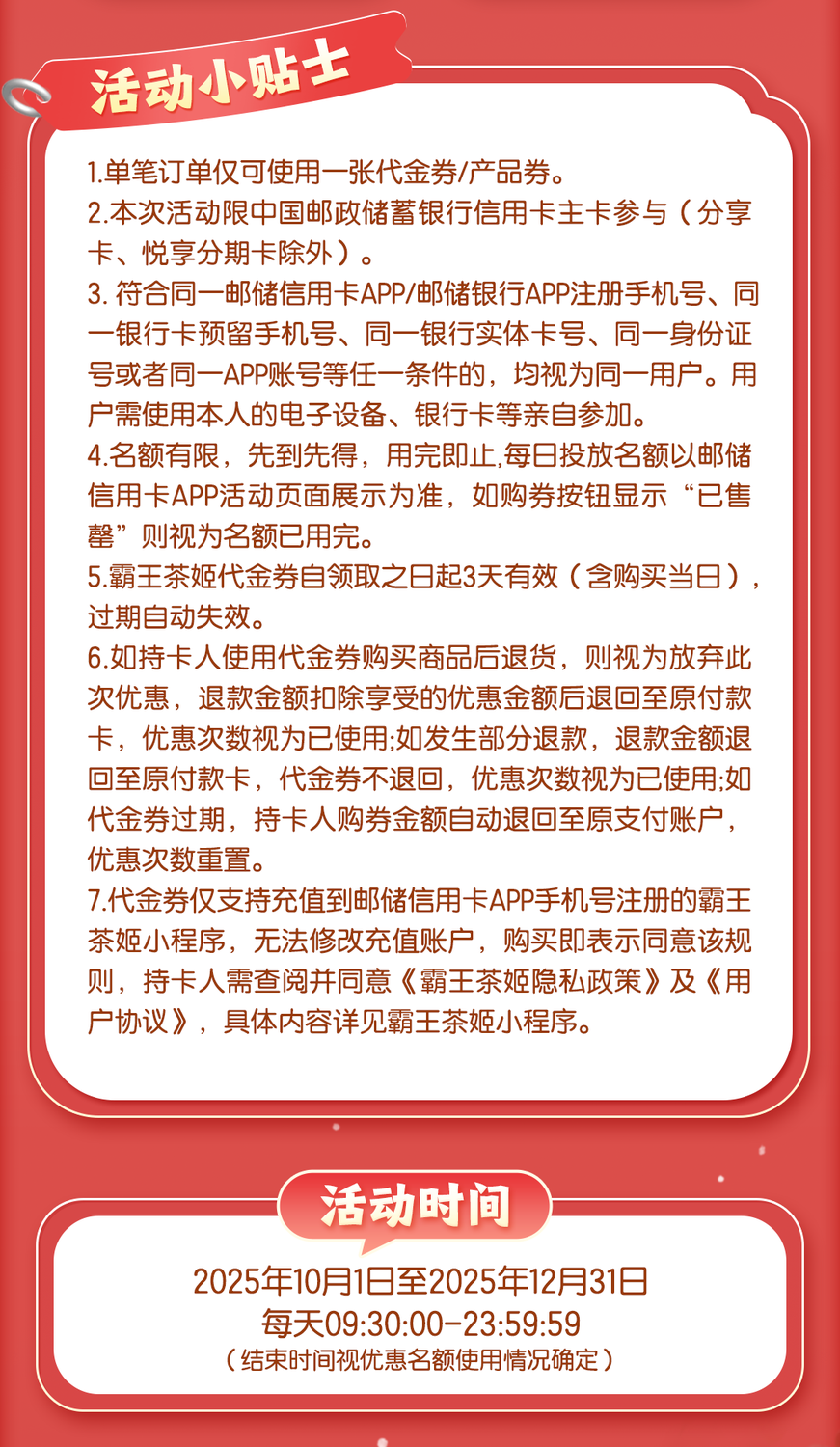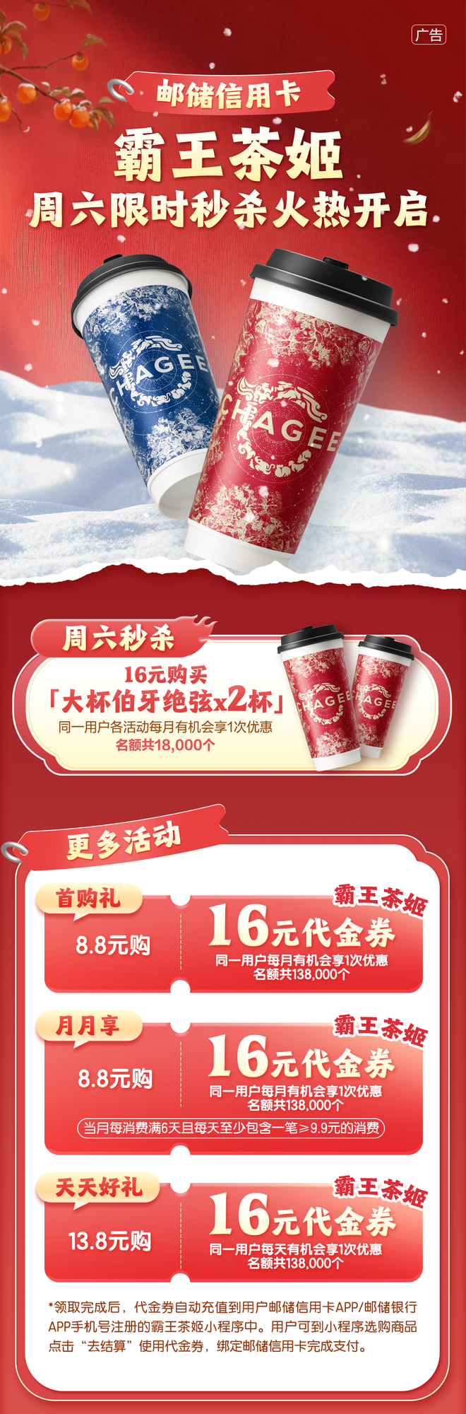 【限时秒杀】邮储信用卡×霸王茶姬,秒杀火热开启! -凯发k8娱乐官网app下载