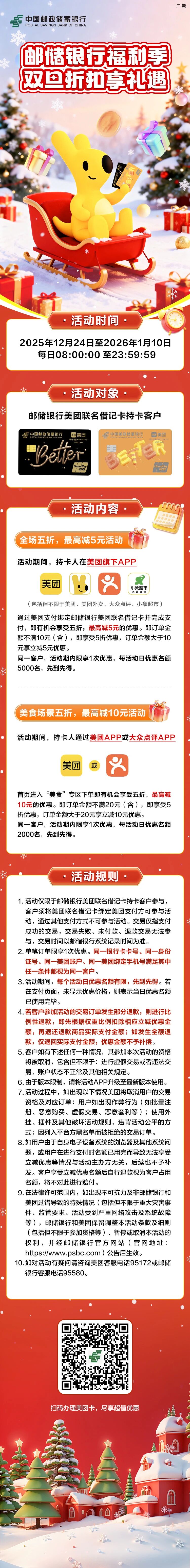 【双旦礼遇】邮储美团联名卡,全场5折! -凯发k8娱乐官网app下载