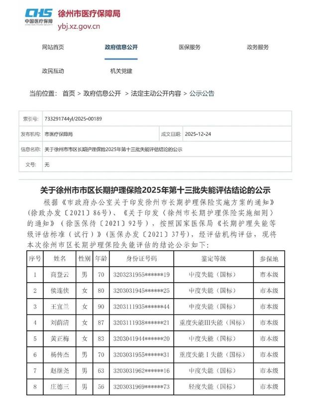 关于徐州市市区长期护理保险2025年第十三批失能评估结论的公示 -凯发k8娱乐官网app下载