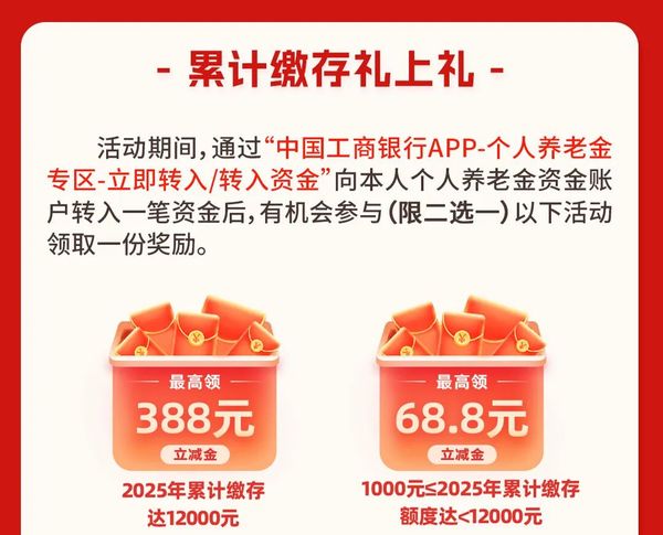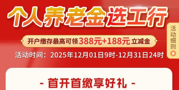 【限时】“个人养老金选工行”,最高领388元 188元微信立减金 -凯发k8娱乐官网app下载