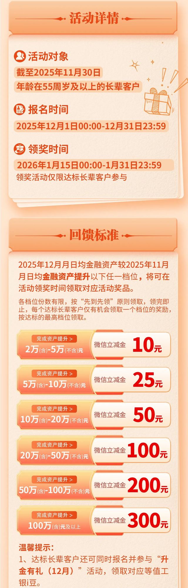 【回馈】长辈客户专享,当月升资产,次月领微信立减金! -凯发k8娱乐官网app下载