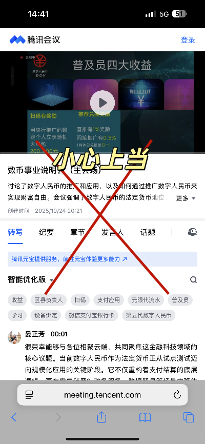 ![]() 近期诈骗类型 不法分子打着“数字人民币推广”的旗号,在微信公众号、视频号、抖音、小红书等网络平台发布虚假消息和凯发k8娱乐官网app下载的联系方式,以高额回报等话术为诱饵,诱导用户加入聊天群组,并在群内开展考试、会议课程等洗脑活动,进一步诱导用户“拉人头”招募新用户加入,企图实施诈骗。上述行为侵害了用户的财产权益和个人隐私。 部分违规内容示例: ![]() ![]() 反诈提示 温馨提醒广大公众: 数字人民币是数字形式的法定货币,采用“央行-数字人民币业务运营机构”双层运营架构,未设立任何民间推广中心,不存在数字人民币推广员考试。数字人民币不具有炒作空间,不存在所谓“兑换补贴”或“流水返佣”,不会通过鼓吹高额佣金或炒币高回报等方式诱导用户泄露个人敏感信息和参与传销。数字人民币相关金融业务均由持牌金融机构提供,获取合法合理收益。高收益往往伴随高风险,面对承诺“高额回报”“稳赚不赔”的数字人民币投资,要保持清醒,切勿相信。请广大公众谨防上当受骗,避免自身经济利益损失。 谨防诈骗,牢记“四不” 01 不图高额返利 数字人民币是数字形式的法定货币,没有所谓补贴、红利。请警惕任何高额回报、兑换补贴、稳赚不赔的承诺。 02 不搞“拉人头” 数字人民币由指定商业银行或合作机构负责推广,从未涉及全员推广、考试拿证、发展下线与团队计酬。凡是以推广员名义招募层级、许诺分润的,皆是骗局。 03 不点陌生链接 数字人民币不存在内部下载渠道、激活码,请通过正规应用商店或登录网址www.pbcdci.cn下载数字人民币。不要点击不明链接、扫描来源不明二维码。 04 不进群参会 数字人民币宣传推广不会通过组建聊天群组、组织线下线上会议的形式开展。凡是要求入群参会进行所谓推广投资的,均属诈骗,请勿加入或立即退出。 反诈灵魂6问 1.刷到“数字人民币推广中心”时问问自己:国家真要推广,为啥不找商业银行,会先轮到我头上? 1 2.被邀请参加“推广员考试”时问问自己:用国家法定货币还得先持证上岗?这“考官”是谁任命的? 2 3.收到“内部激活码”时问问自己:我去银行取钱都不用激活码,他这码是激活钱包,还是激活我卡里的钱转走? 3 4.对方承诺“兑换享补贴、推广即返佣”时问问自己:数字人民币与现金1:1等值兑换,哪来的“兑换红利”?真有钱补贴,为什么对方不自己偷偷换完? 4 5.听到“拉人头、团队计酬”时问问自己:正规的法定数字货币推广,什么时候变成传销式拉人头“发展下线”了? 5 6.被拉进“推广群、培训会”时问问自己:官方宣传什么时候要躲群里开会了?是见不得光还是怕被查? 下一篇: 大雪丨雪落无声 岁寒知暖