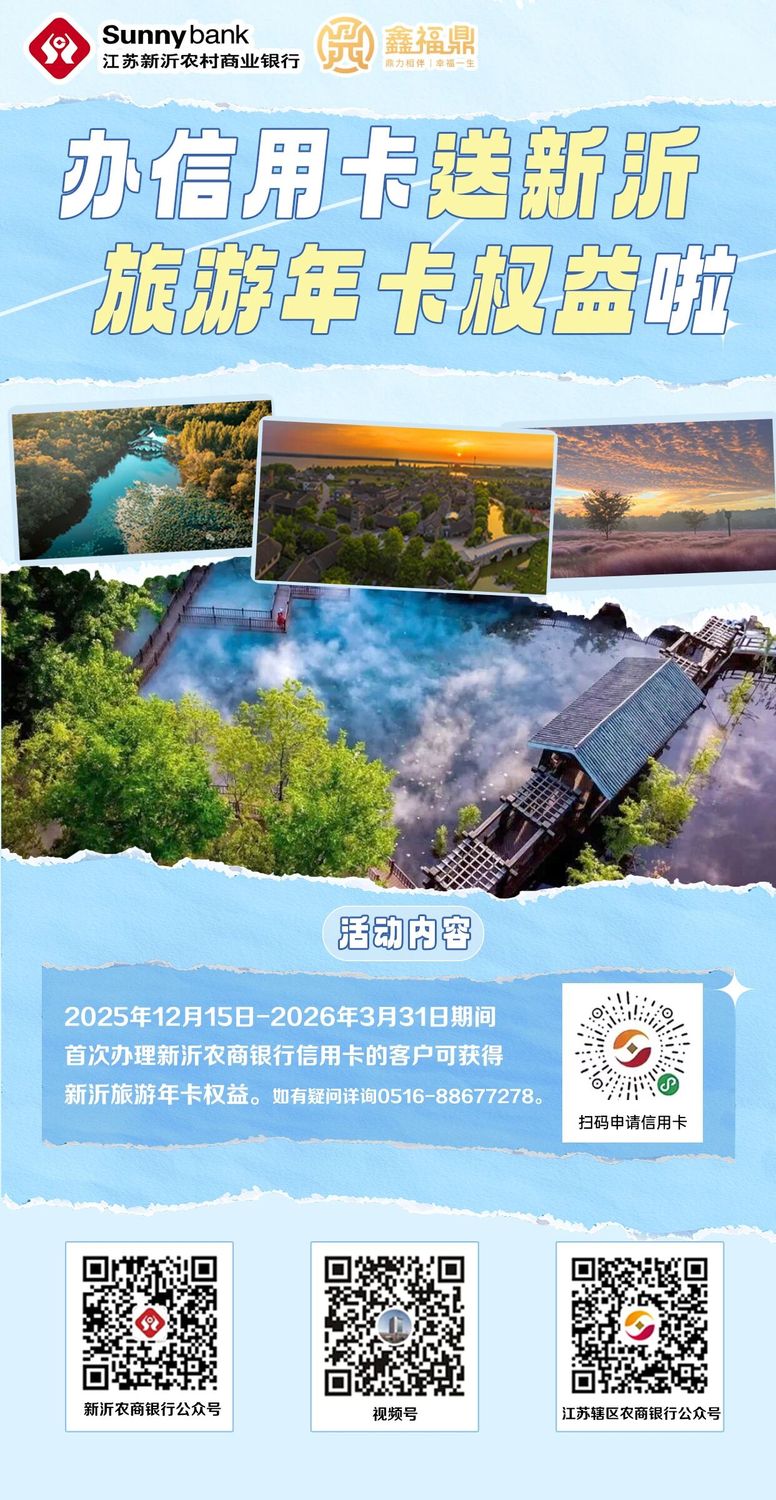 办新沂农商银行信用卡,送新沂旅游年卡权益啦! -凯发k8娱乐官网app下载