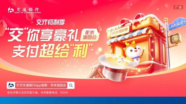 ![]() 消费既是推动经济增长的强劲引擎,也是实现人民美好生活的重要支撑。党的二十届四中全会提出“坚持扩大内需这个战略基点,坚持惠民生和促消费”重要部署,中央经济工作会议明确要求“坚持内需主导,建设强大国内市场”,交通银行积极响应政策号召,持续升级“交行福利季”品牌活动,发力消费场景建设,升级线上金融服务,将拉内需、惠民生、促消费落到实处。 深耕消费全场景 激发市场新活力 ![]() “交行福利季”作为交行打造的特色惠民活动品牌,五年来始终秉持“惠民生促消费”理念,结合客户“吃住行游购娱”等消费场景,开展多项惠民活动,做到季季有特色,月月有上新,周周有活动,日日有好礼。2025年,“交行福利季”在常态化活动方面,进一步加大优惠力度,持续创新活动形式,迭代优化支付体验。同时,结合“以旧换新”“数码家电国补”等政策,推出不同主题的客户活动,助力政策红利转化为客户可感可及的福祉。全年累计超1亿客户参与“交行福利季”活动,为市场注入消费新活力。 在上海市“五五购物节”期间,交行推出覆盖16个重点商圈、超1000个品牌、6500余家门店的“数字生活节·交行福利季”主题活动,助力上海国际消费中心城市建设。 11月,商务部“购在中国”重要活动之一的“2025精品消费月”启动仪式在上海举行,“交行福利季·精品消费月”主题活动同步上线,涵盖全国优惠活动和部分具有城市特色的消费福利,为客户带来美好生活体验。 随着年末消费旺季临近,“交行福利季”再度发力,结合“线上 线下”消费场景推出“年末游园会·领海量缤纷福利”活动,促进市场消费潜力进一步释放。 科技赋能金融服务 切实提升消费体验 ![]() 作为国有大行,交行始终坚持金融工作的政治性、人民性,从民生需求出发,以金融服务铸基,持续发力消费场景建设,让惠企利民的“暖意”渗透到人民生活中,多措并举助力人民群众实现对美好生活的向往。