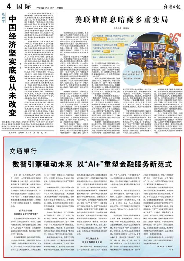 《经济日报》丨数智引擎驱动未来 交通银行以“ai ”重塑金融服务新范式 -凯发k8娱乐官网app下载2025-12-17 15:22来源:交通银行