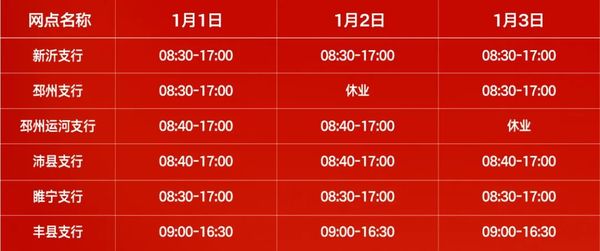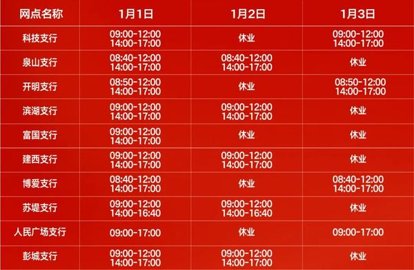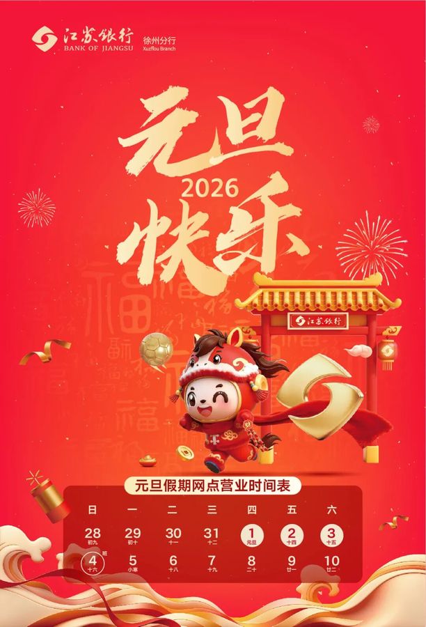 营业公告|2026年"元旦"期间江苏银行徐州分行各网点营业时间安排 -凯发k8娱乐官网app下载