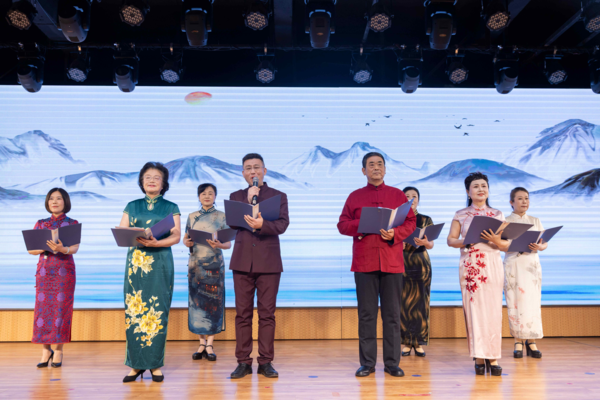 ![]() ![]() ![]() ![]() 朗诵会精彩瞬间。 朗诵会开始后,徐州市朗诵艺术协会带来了一个个精彩的朗诵节目;徐州市消防救援支队指战员深情讲述了他们如何践行总书记训词要求“对党忠诚、纪律严明、赴汤蹈火、竭诚为民”的一个个惊心动魄、生动感人的灭火救援故事;徐州市二胡学会带来了他们热烈的器乐演奏,为朗诵会营造了浓浓的节日氛围;徐州市东华小学的孩子们表演了《我们为什么而读书》,把“少年智则国智,少年强则国强”诠释的淋漓尽致;睢宁县阅读会也表演了他们精心准备的节目。 整场朗诵会节目丰富,形式多样,高潮迭起,异彩纷呈。现场座无虚席,观众们被精彩的表演所感染打动,现场不时爆发出热烈的掌声。 ![]() 演出结束后,全体演职员和嘉宾合影留念。 “徐州之声迎新年朗诵会”至今已连续举办了三届,受到社会的高度关注和热烈欢迎,已成为徐州冬日里一道亮丽的文化风景。许多主流媒体每年纷纷给予关注和宣传报道,让徐州之声传得更广更远。