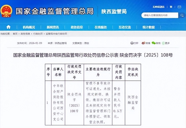 中华财险一中心支公司收罚单 -凯发k8娱乐官网app下载2026-01-13 15:49来源:读创财经