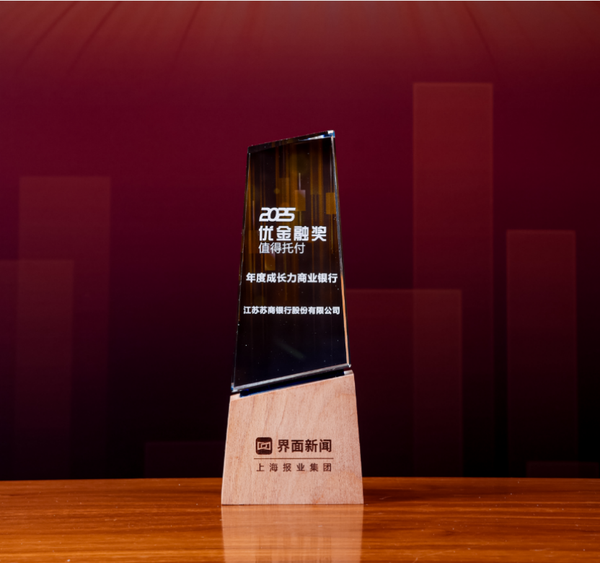 近日,由上海报业集团旗下界面新闻主办的“2025界面财经年会暨‘优金融奖’颁奖典礼”在上海圆满落幕。本次年会以“拥抱变革 破局共生”为核心主题,汇聚金融与经济领域专家学者、行业精英,共探中国经济的韧性根基、转型路径与增长新范式。作为年会的核心环节,“优金融奖”颁奖典礼聚焦金融业年度履职表现与行业引领力,吸引银行、保险、证券、金融科技等多领域机构踊跃参与。经过多维度严苛评选,苏商银行凭借卓越的成长韧性、差异化的数字普惠实践及扎实的经营成效,成功摘得2025【优金融奖】“年度成长力商业银行”殊荣。