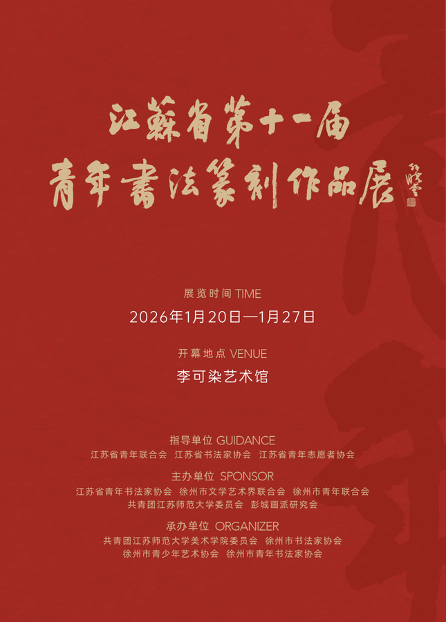 展讯 | 江苏省第十一届青年书法篆刻作品展将于1月20日在徐州开幕 -凯发k8娱乐官网app下载2026-01-14 13:56来源:江苏省青年书法家协会