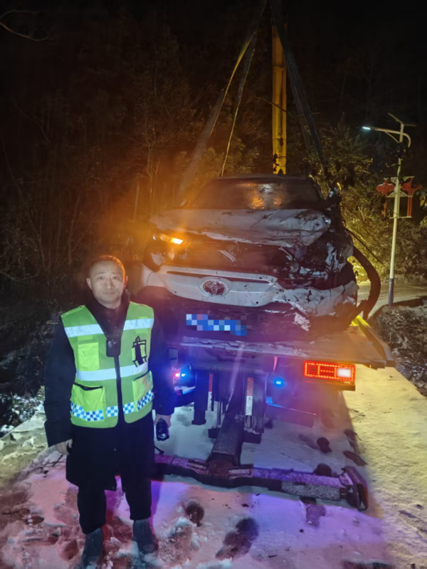 “车翻到八米多深的山沟里了!人送去医院了,但这天黑路滑,车还困在沟底,我们一点办法都没有……”1月19日晚,车主家属苏先生焦急地拨通了中国太保的客服电话。 中国太保产险湖北分公司查勘员王勇接到电话后当即回应:“您别急,我们马上出发。”随后,他迅速整理头灯、救援设备等装备,顶着凛冽风雪赶往事故现场。 当时,湖北全省已启动低温雨雪冰冻应急响应,恩施山区气温跌至-4℃以下,一辆轿车在恩施山区下山途中失控侧翻,坠入8米深的陡峭山沟,车内3人受伤送医,受损车辆被困于积雪沟底,面临山路封路和滞留风险。 山路被厚冰与积雪覆盖,行车异常艰难,当救援车辆行至山脚无法继续前进时,王勇背起工具包,在没脚踝的积雪中深一脚浅一脚徒步登山,寒风裹挟着雪粒抽打在脸上,每一步都需小心翼翼避开暗藏的冰面。 抵达现场后,漆黑的沟底与复杂地形让吊车难以精准作业。“我下去查勘!”王勇话音未落,便沿着湿滑的沟壁往下挪动。积雪下的杂草与碎石暗藏险情,在接近事故车辆时,他脚下一滑重重摔坐在地。“小心!小心啊!”山沟上方的苏先生惊呼出声,王勇爬起来拍拍身上的积雪,抬头笑道:“没事没事,路是滑了点。”