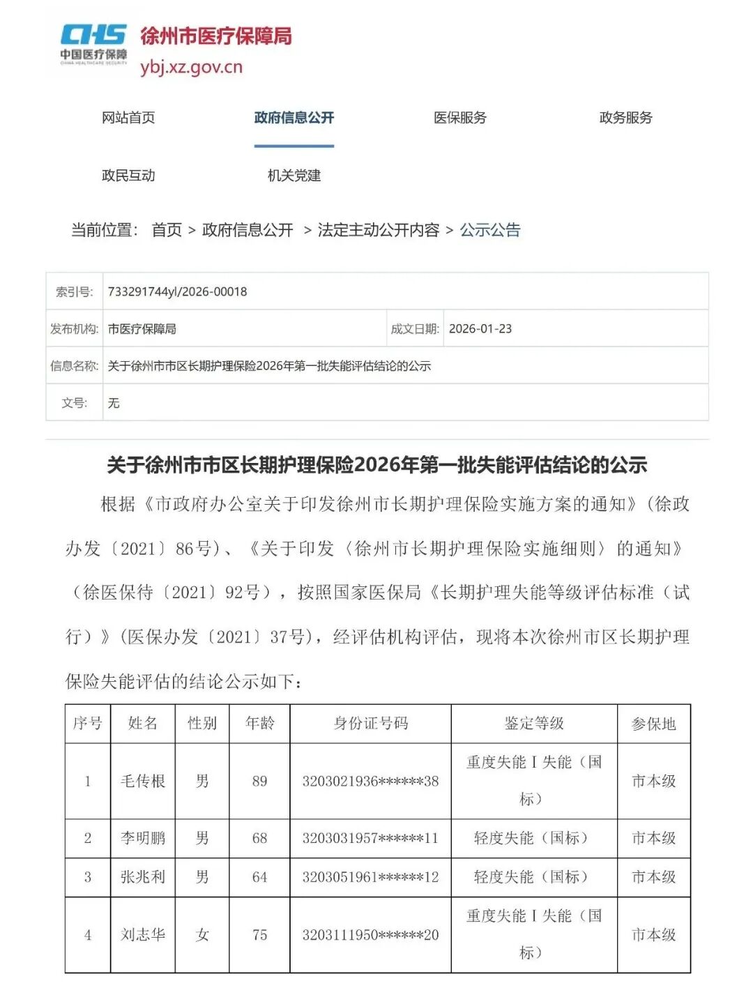 关于徐州市市区长期护理保险2026年第一批失能评估结论的公示 -凯发k8娱乐官网app下载