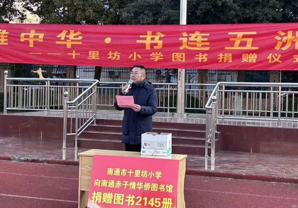 华侨图书馆志愿者分站办公室主任吉爱民、副主任徐崇明代表华侨图书馆接受捐赠并为学校颁发捐赠证书,华侨图书馆还向十里坊小学授旗致谢,现场众人合影留念。 上一篇: 雪落下的声音